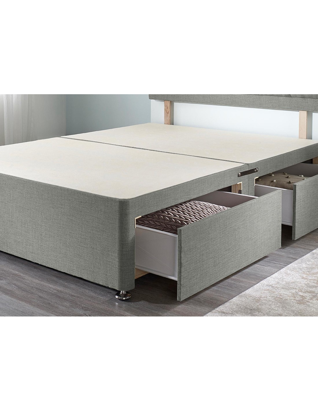 The Olive Divan is affordable luxury at its finest! This bed base shows that simple is effective, with its simplistic yet sleek upholstered style. Each upholstered section is finished with button details, to complete this luxe bed frame. The Olive Divan is built upon a supportive bed base, with the options of side opening or foot end opening drawer features.