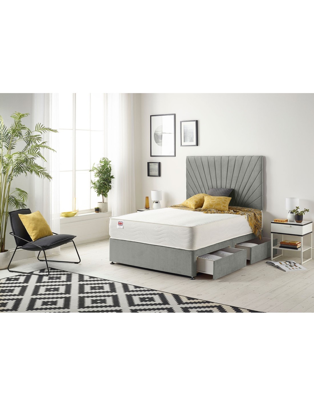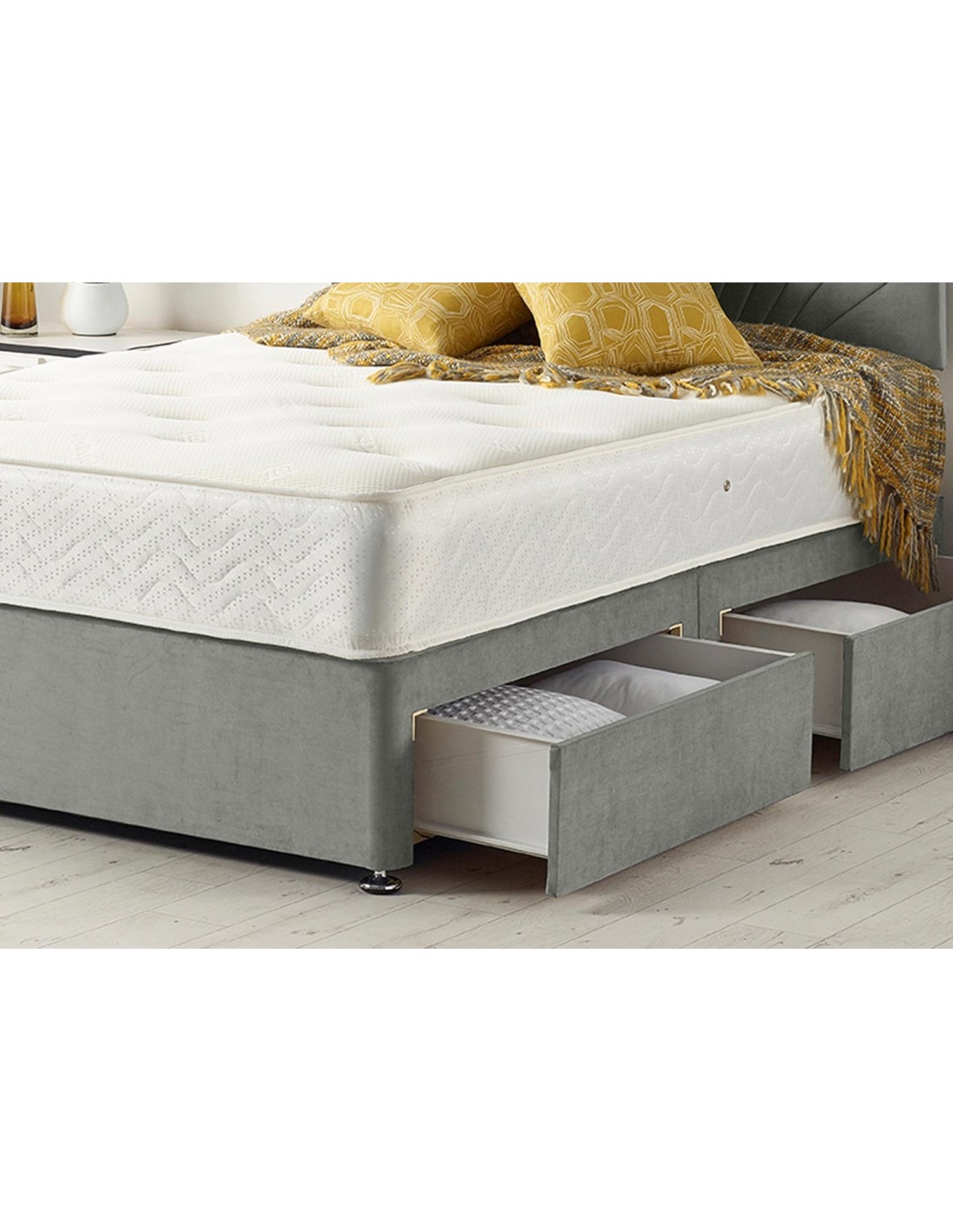 The Platinum Divan is one of a kind here at Next Divan and is made to offer its unique beauty as well as storage to suit your needs. The upholstery style of the Platinum Divan represents that of a rising sun and is sure to make your interior stand out in the crowd, with its boho look and feel. You can choose from either side opening or foot end opening drawers, to suit your room layout for easy siding.Â