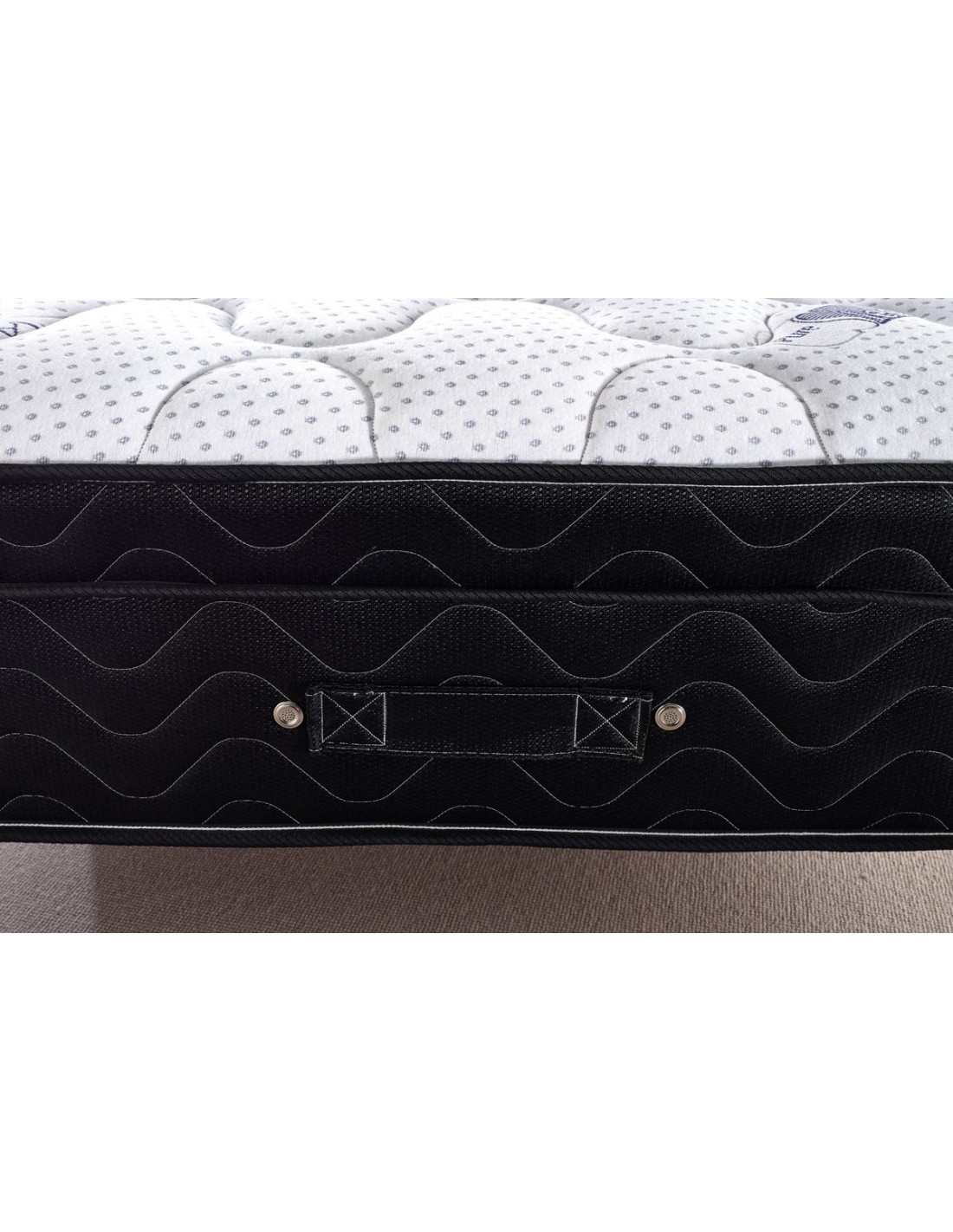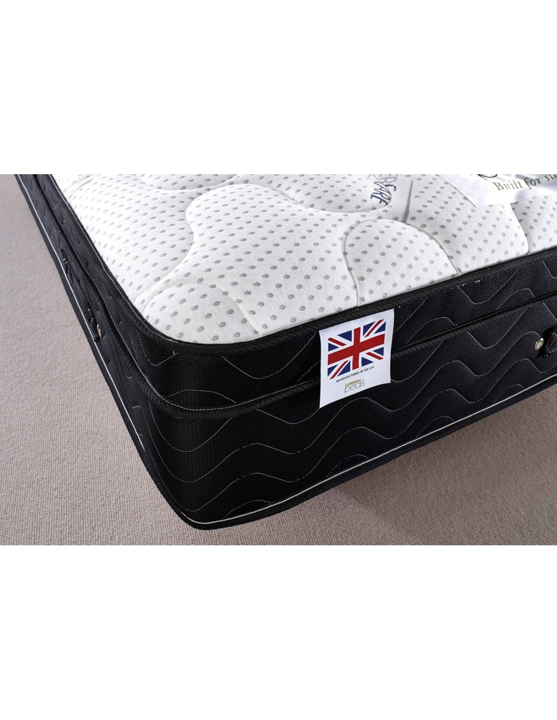 This is an orthopaedic mattress which comprises of 12.5g of orthopaedic springs and our luxury fillings, this provides a strong support base for those who have pain issues. The mattress also has an included topper which is made from 2.5cm of memory foam. Thanks to the inclusion of the topper there in no need to buy an extra topper. The mattress is covered in a knitted fabric with air vents in all sides which aid in helping the mattress breathe. The mattress is available in the following sizes; 2FT6 Small Single, 3FT Single, 4FT Small Double, 4FT6 Double, 5FT King, 6FT Super King.